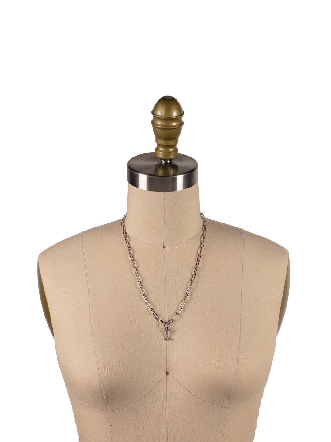 A crystal embellished initial charm sits at the base of a trendy paperclip chain and is secured with a lobster clasp closure. From Sorrelli's Crystal collection in our Palladium finish.