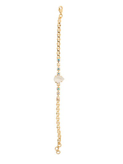 The Kamri Tennis Bracelet features a single pear-cut crystal centerpiece, surrounded by round-cut crystal studs along a sleek, plain chain. Adjustable and secured with a lobster claw clasp, this bracelet is a refined and elegant addition to any collection. From Sorrelli's Icicle collection in our Bright Gold-tone finish.